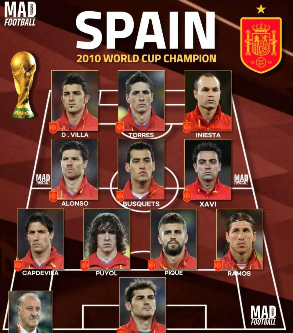 回顾这支球队具体阵容:比利亚和托雷斯两名前锋分别效力瓦伦西亚和利物浦,年龄正值巅峰;中场四大核心哈维、伊涅斯塔(巴萨)、布斯克茨(巴萨)和阿隆索(皇马)掌握比赛节奏,控制能力极强;后防线上普约尔、拉莫斯、皮克均为顶尖防守者,加上经验丰富的卡普德维拉,使得后防线坚如磐石。门将卡西利亚斯更是世界级守门员,协助球队多次做出关键扑救。